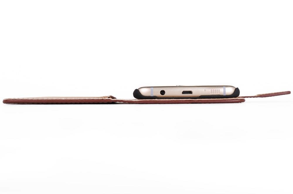 De bookcase is niet bestand tegen veel vocht, dus voorkom onnodige blootstelling aan vocht. Kijk of het mogelijk is om deze met waterafstotende spray te impregneren. Plaats maximaal twee pasjes in de smartphone-hoes en een paar geldbiljetten. Zodoende blijft de vorm van de bookcase behouden.